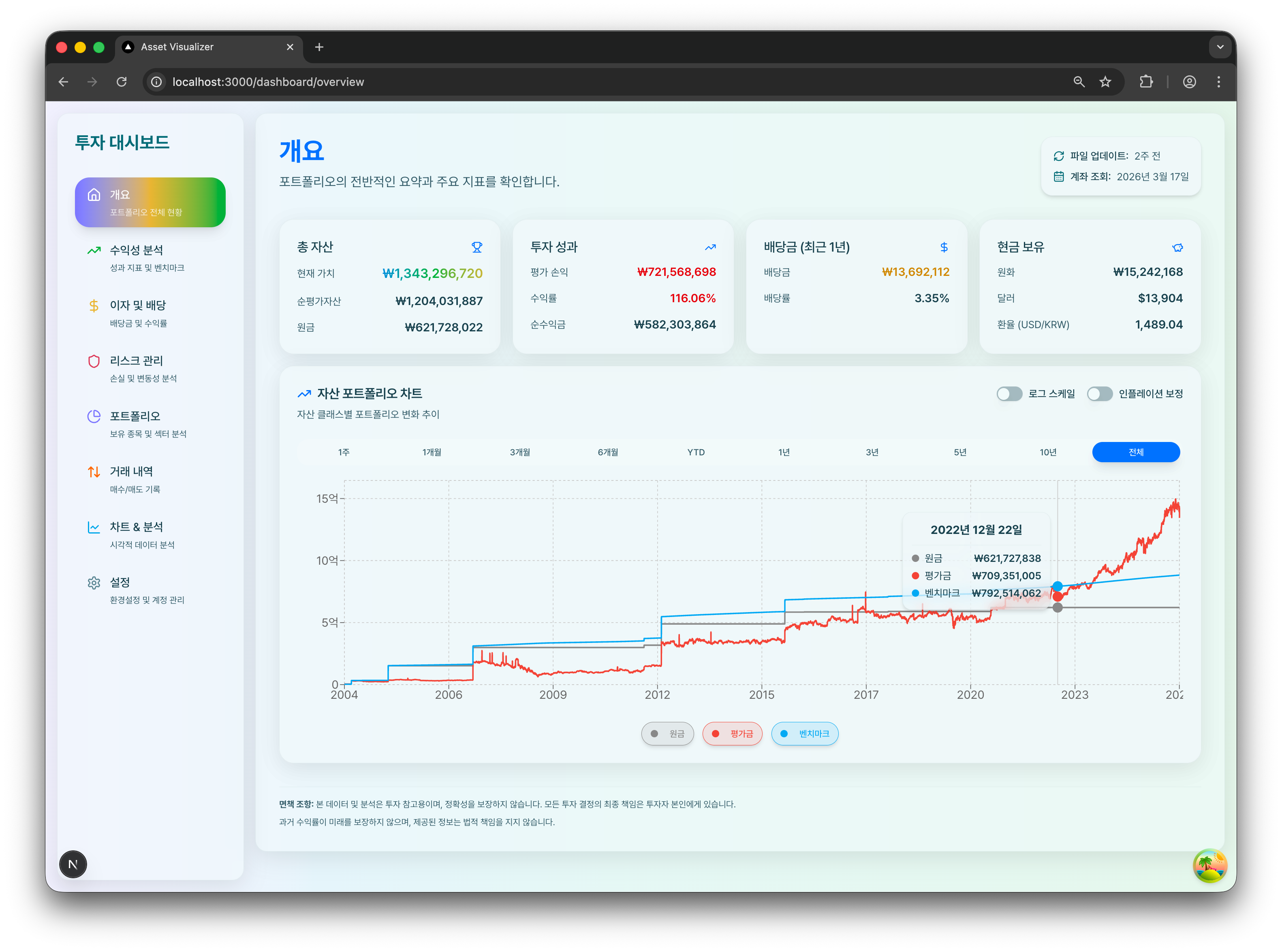 신한투자증권의 거래내역 데이터(CSV)를 분석하여 계좌 정보를 직관적인